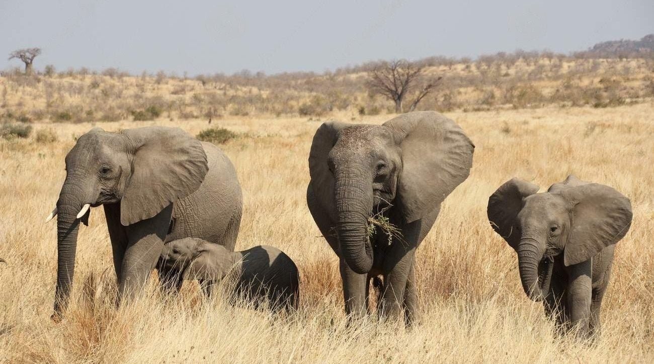 In the distance, beneath a bulbous baobab tree, a few representatives of Ruaha’s 10,000 elephants – the largest population of any East African national park, form a protective huddle around their young.